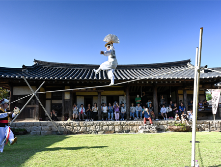 - 줄광대가 줄 아래에 어릿광대와 삼현육각 악사를 대동하고 음악 반주에 맞추어 줄 위에서 다채로운 기예·재담·가요를 연행(演行)하는 전통연희이다. 줄타기는 연희 장면에 적합한 가요와 해학적이고 풍자적인 재담이 다양한 기예와 어우러져, 관중의 흥미와 탄성을 자아내는 고난도의 기예로, 재담, 음악의 유기적 결합체로 줄타기가 단순한 기예를 넘어 주제 의식을 표출할 수 있는 수준 높은 공연예술로 자리매김하게 했다.
