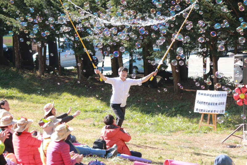 아이들이 좋아하는 마술쇼와 비눗방울쇼를 한번에 보여주는 공연