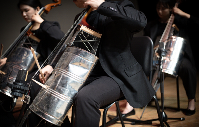<이계>는 21세기의 급격하게 망가지고 있는 지구의 모습을 업사이클 현악기로 연주
